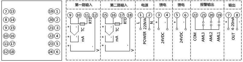 圖1   儀表說(shuō)明書(shū)上提供的儀表接線(xiàn)圖