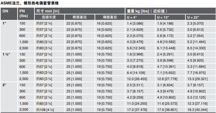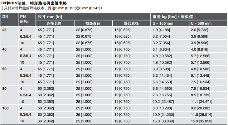 ◆ 作壓力:接型溫度計套管THERMOWELL: -0.1~10MPa;整體鉆孔型溫度計套管THERMOWELL: -0.1~30MPa;溫度計套管THERMOWELL隨所選材料種類和使用溫度不同,應該將公稱壓力合理地降額后作為使用的工作壓力。