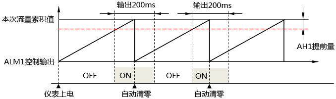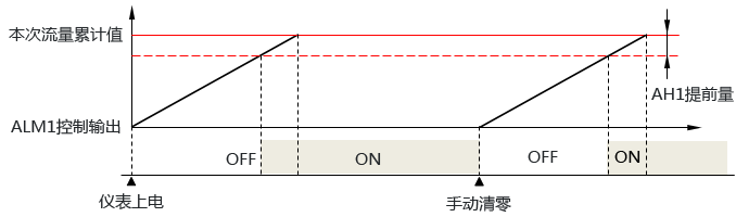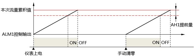 1、流量定量控制儀的第一報警(AL1)流量定量控制輸出時序圖