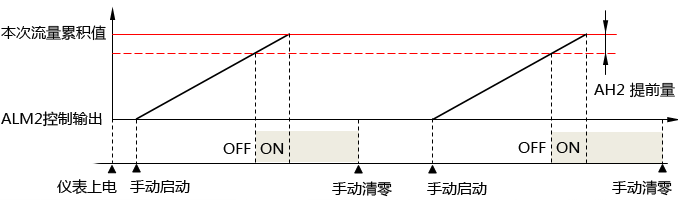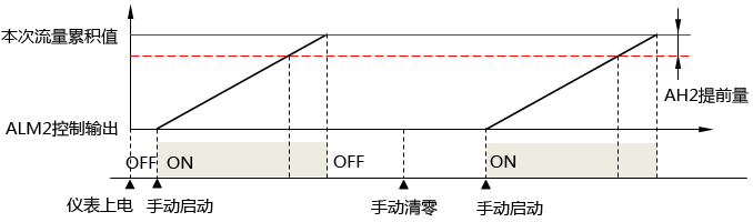 2、流量定量控制儀的第二報警(AL2)定量控制輸出時序圖