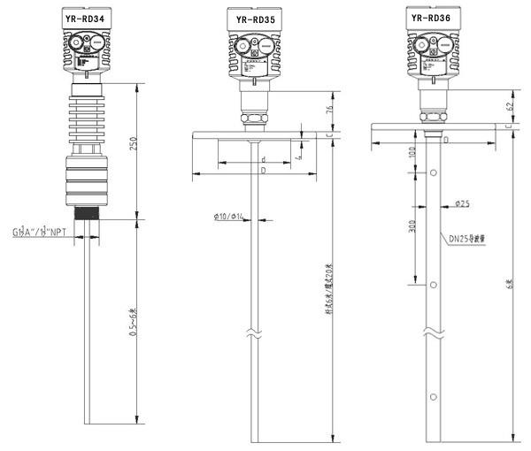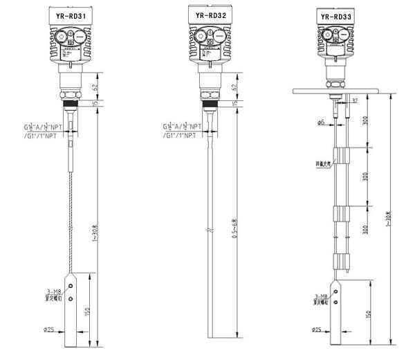 YR-RD32□□□□□□□□-□    最大量程6米,液體液位測量