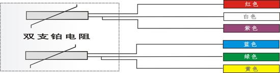 1#測溫電阻引線顏色為紅色、白色和紫色;2#測溫電阻引線顏色為藍(lán)色、綠色和黃色