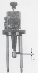 3、PSL執行器與閥門連接完成后,全關時(以下端關上端開為例)銅套外露值d不得超過額定行程(PSL201和PSL202為5mm,PSL208和PSL210為6mm,PSL312、PSL314、PSL316、PSL320和PSL325為100mm),見下圖。