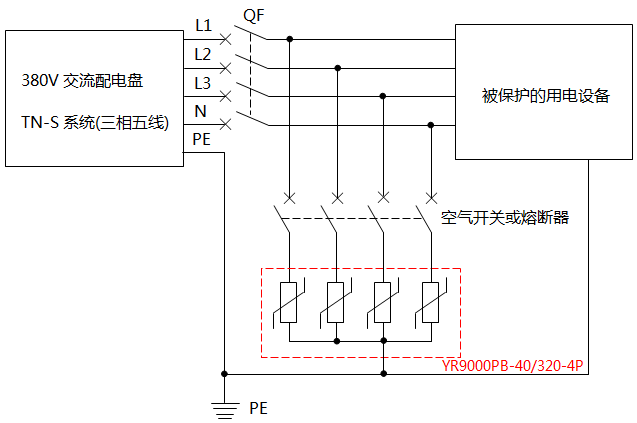 ◆YR9000PB-40/320-4P三相交流電源電涌保護器接線