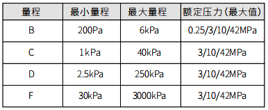 [F]:0-30kPa~3MPa(0-3~300mH2O)/(0-0.3~30bar)