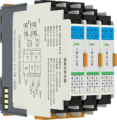 檢測端隔離安全柵安裝在空氣中不含對鉻、鎳、銀鍍層起腐蝕作用的介質的控制柜內,需要外接20-35VDC電源。安全柵輸入、輸出和電源之間完全隔離,安全柵穩定性、可靠性、低溫度漂移和精度等質量核心技術指標與進口產品媲美,產品質量口碑和高性價比是客戶選擇昌暉儀表的根本。