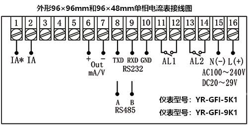 單相電流表型號:YR-GFI-9K1N1M-N2-N-T