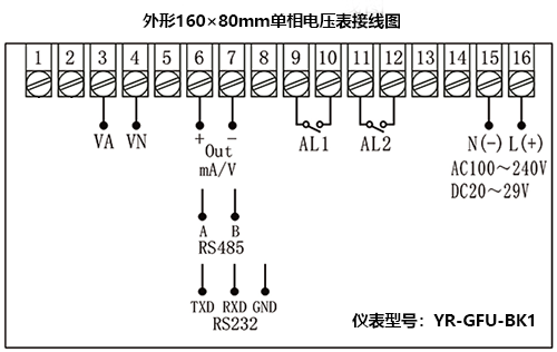 ⑥變送輸出(160×80mm儀表通訊和變送輸出不能同時存在;96×96mm和96×48mm儀表通訊和變送輸出可以復(fù)選)