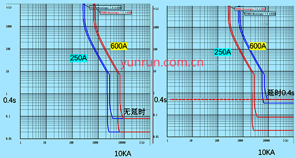 正是因?yàn)?.4s是允許的極限溫度時(shí)間,所以低壓配電設(shè)計(jì)操作時(shí),一般不拿短延時(shí)作為保護(hù)選擇性的手段,通常變壓器出現(xiàn)主開(kāi)關(guān)設(shè)置0.4s的短延時(shí),其他下級(jí)開(kāi)關(guān)不做延時(shí)。