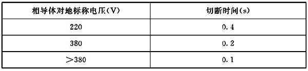圖3 TN系統(tǒng)的最長(zhǎng)切斷時(shí)間