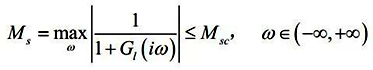 由于被控過程本身具有的不確定性,以及建模過程的不確定性,可以自然地想到利用控制系統的魯棒性作為參數整定推導的約束性調節。在該研究中,選擇容易量化的最大靈敏度Ms作為魯棒性指標。根據的定義,最大靈敏度約束可表示為: